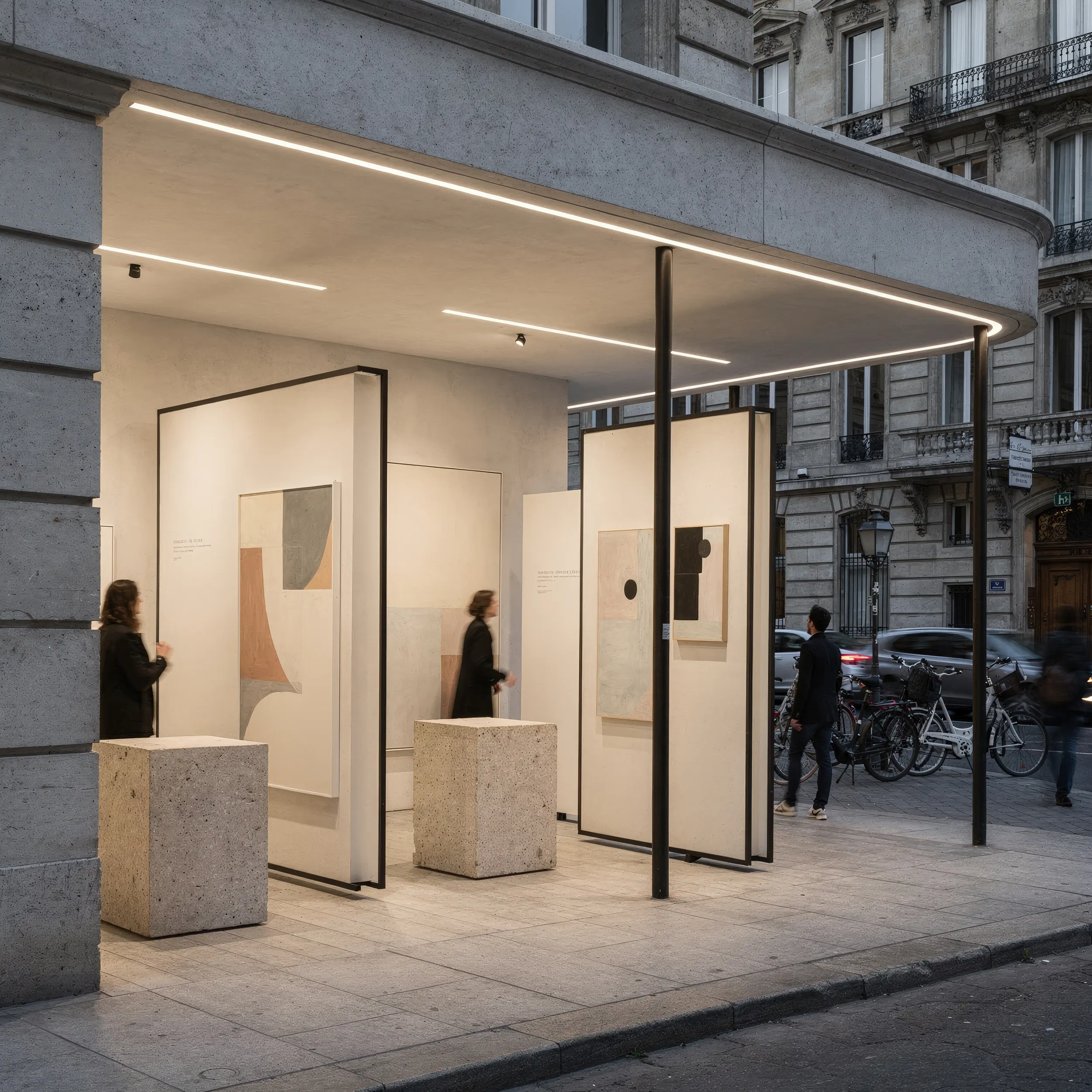 Urbane Interventionen: Die nahtlose Integration moderner Designkonzepte in historische Stadtbilder. Diese Visualisierung einer minimalistischen Open-Air-Galerie zeigt, wie wir Architektur und Retail-Konzepte kontextbezogen erlebbar machen – ohne Genehmigungsverfahren, Aufbaukosten oder die Einschränkungen des öffentlichen Raums.