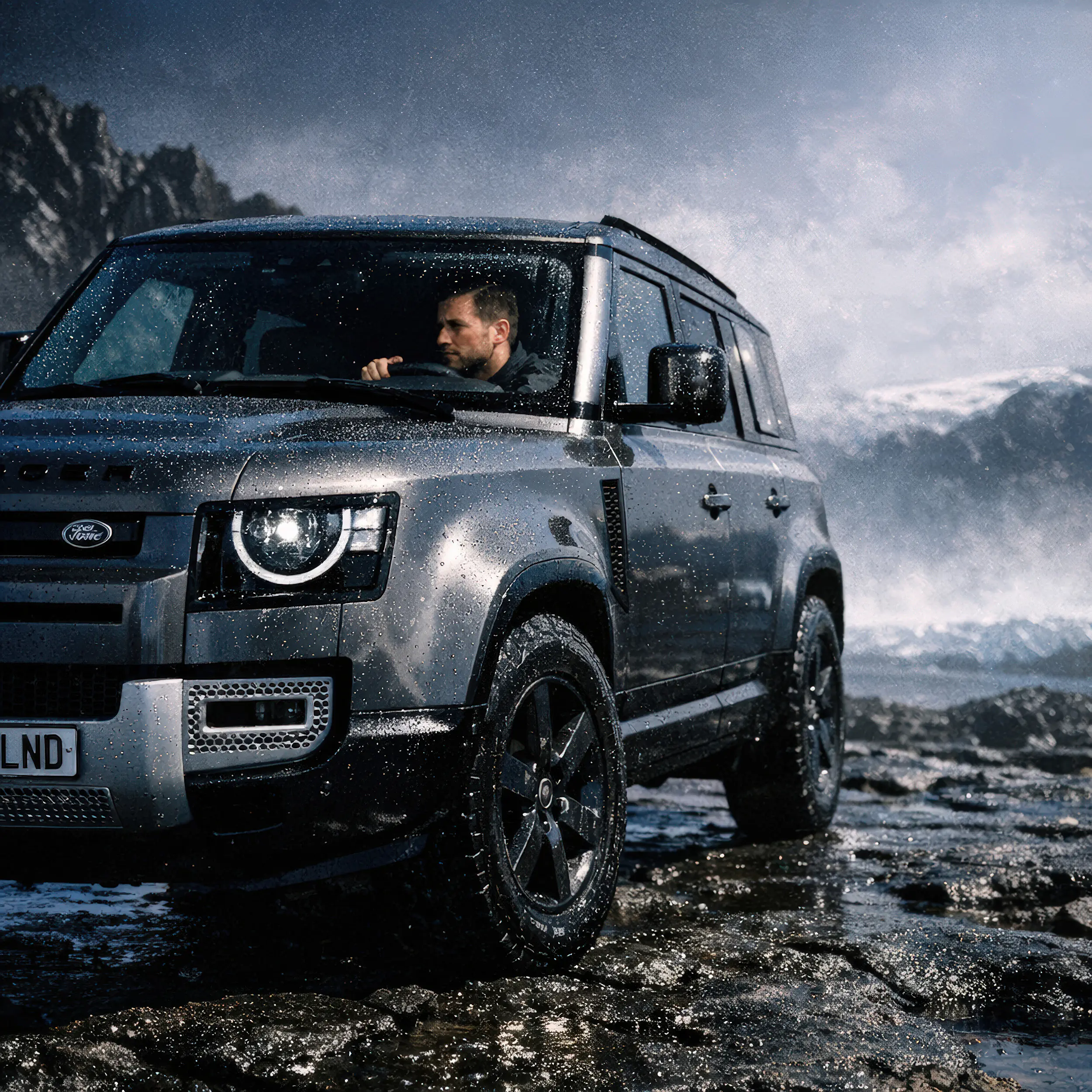 ero-Shots in extremen Umgebungen ohne logistischen Aufwand. Markenkonforme Inszenierung von Offroad-Szenarien mit Fokus auf physikalische Details wie Wasser, Schlamm und Lichtreflexionen.