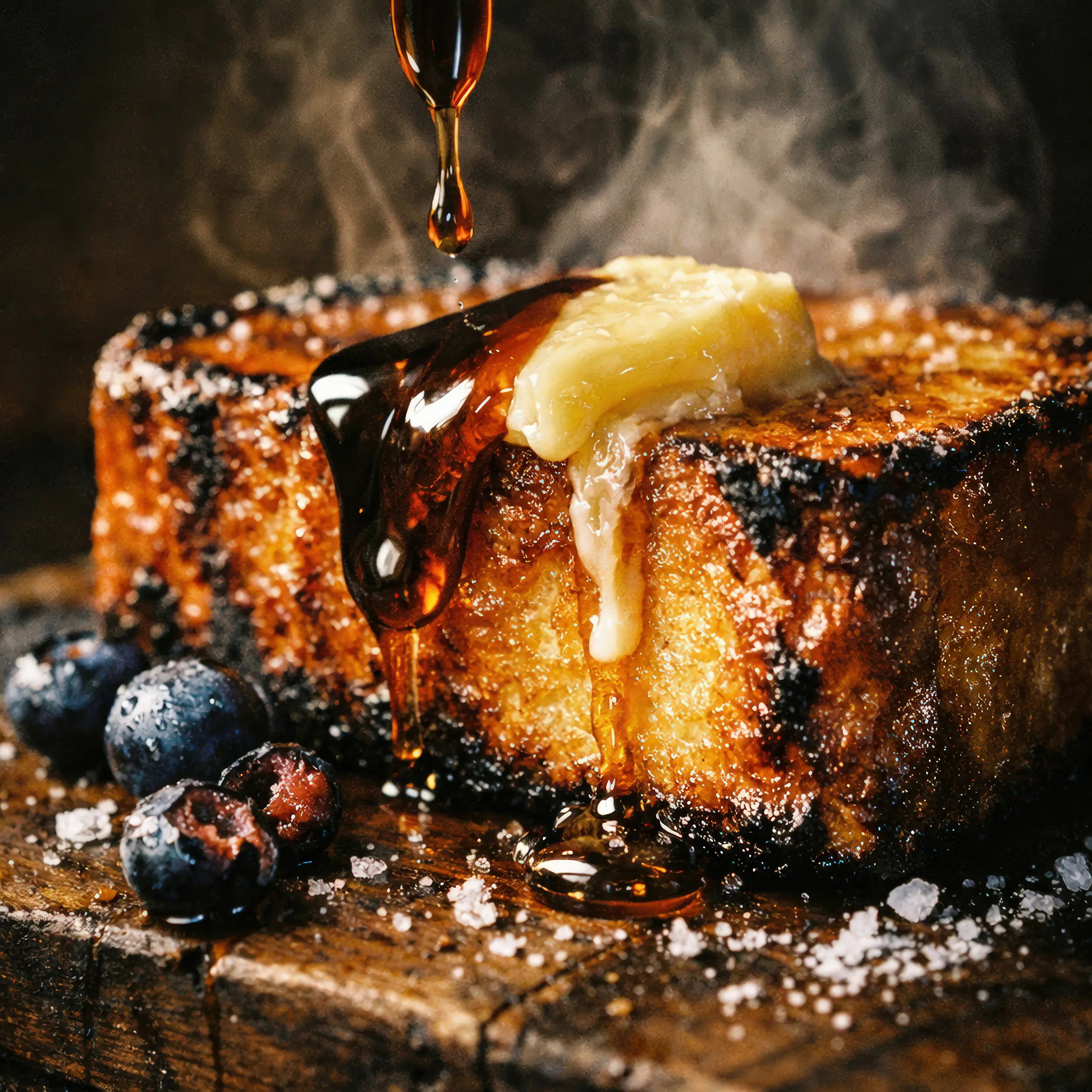 Makellose Food-Inszenierung ohne Zeitdruck und Food-Styling. Art-directed KI-Produktion mit Fokus auf Texturen, Frische und atmosphärische Lichtsetzung.