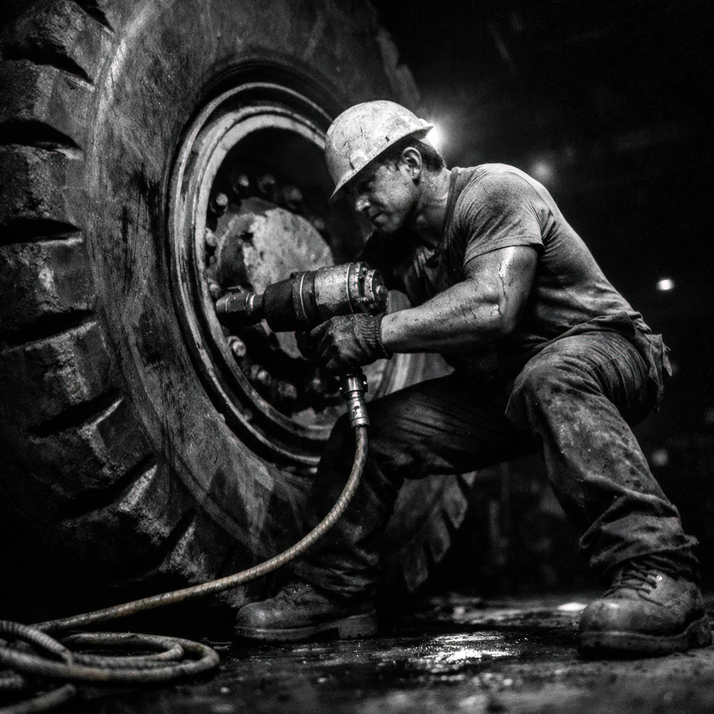 Dramatische Industrie-Inszenierung ohne komplexes Werkstatt-Leasing. Markenkonforme Darstellung physischer Arbeit mit Fokus auf Materialtexturen und kontrastreiche Lichtführung.