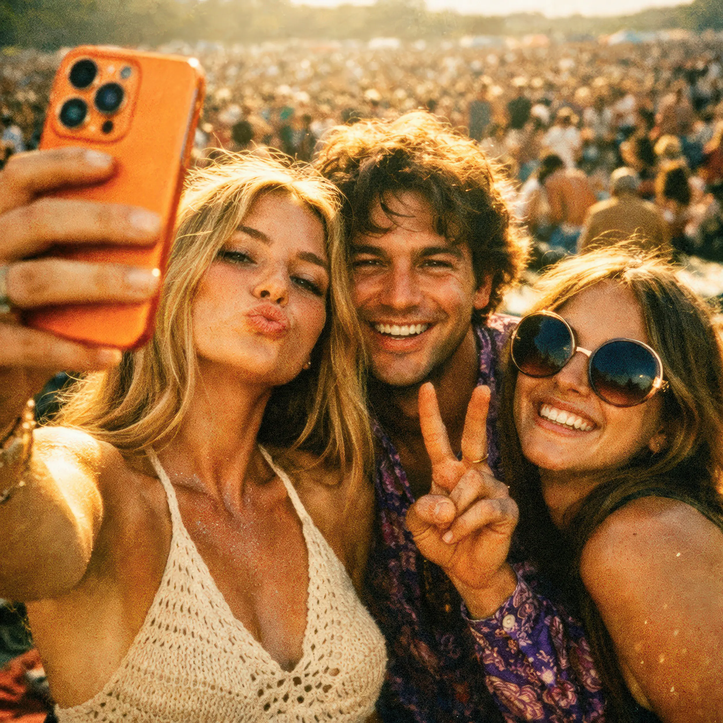 Hochenergetische Festival-Szenen ohne On-Location-Risiko. Art-directed KI-Produktion dynamischer Momente mit Fokus auf Lichtbrechung, Bewegung und authentische Emotionen.