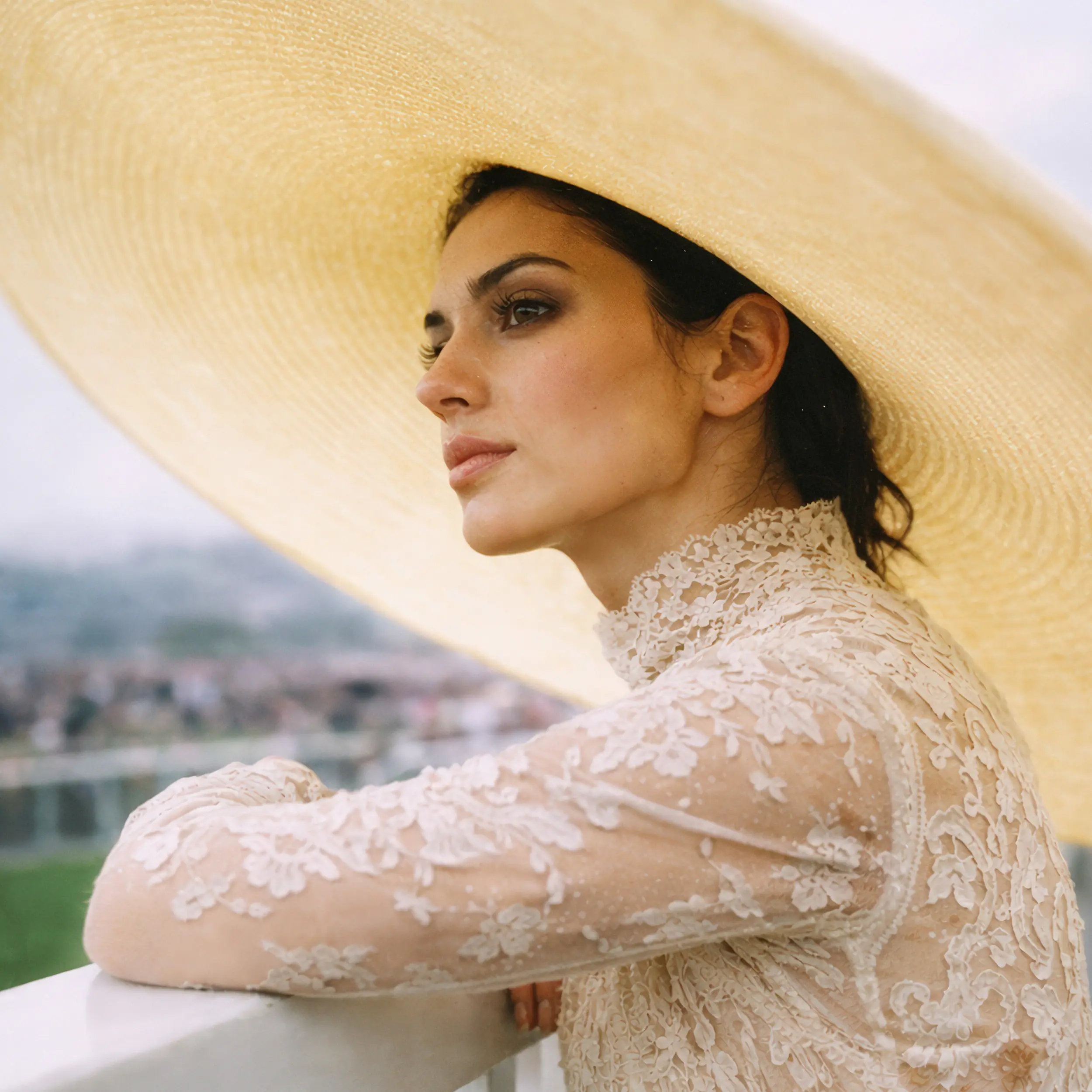 Exklusive Event-Inszenierung ohne On-Location-Kosten. Art-directed KI-Produktion mit Fokus auf feinste Texturen wie Spitze und Strohgeflecht in atmosphärischen Settings.