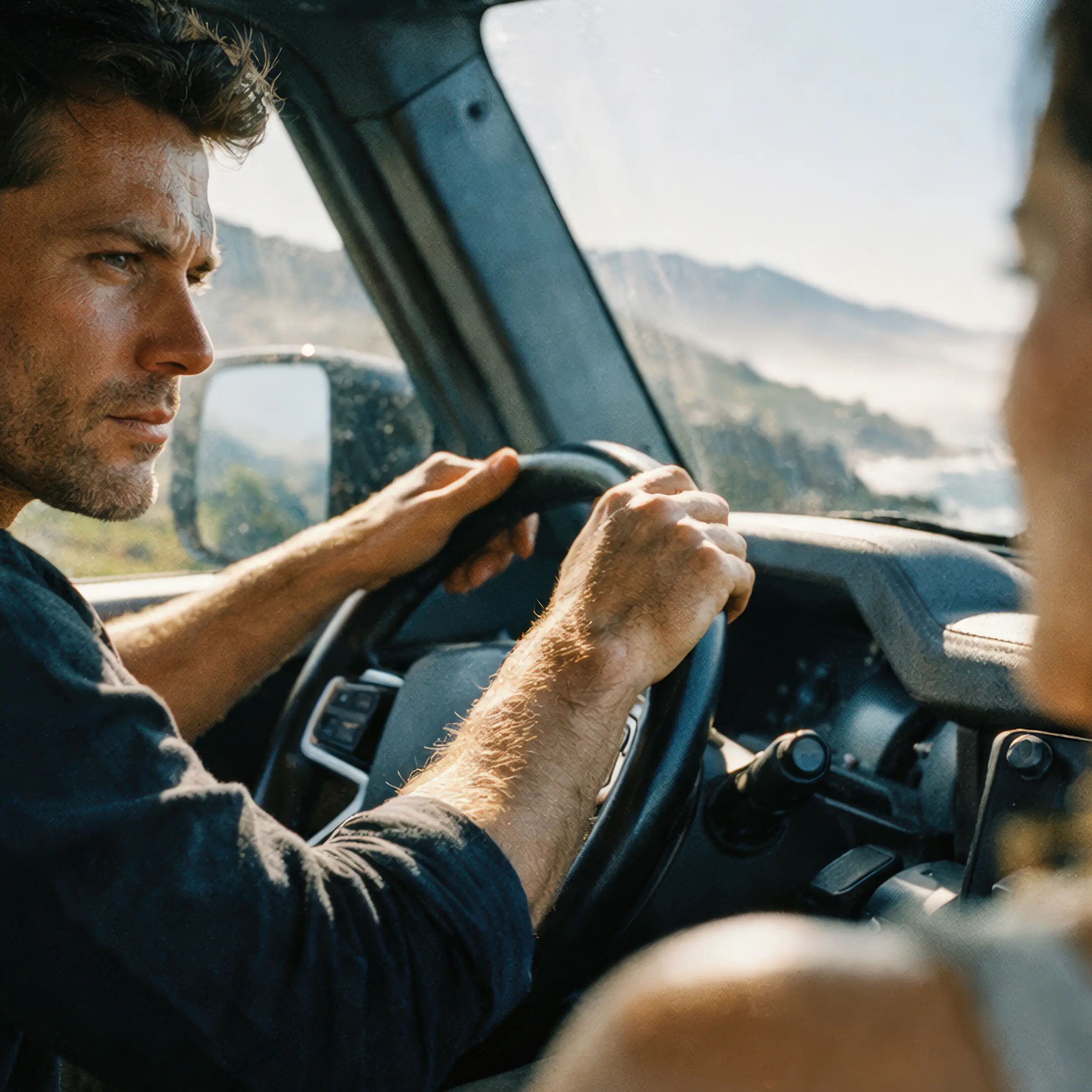 Authentisches Storytelling: Momente voller Freiheit und Fokus, digital kuratiert. Dieses Bild demonstriert unsere Fähigkeit, menschliche Emotionen und cineastische Lichtstimmungen in komplexen Umgebungen zu erschaffen. Wir liefern High-End-Content für Lifestyle- und Automobilmarken, der echte Verbundenheit erzeugt – ganz ohne Reisekosten, Casting-Aufwand oder logistische Hürden am Set.