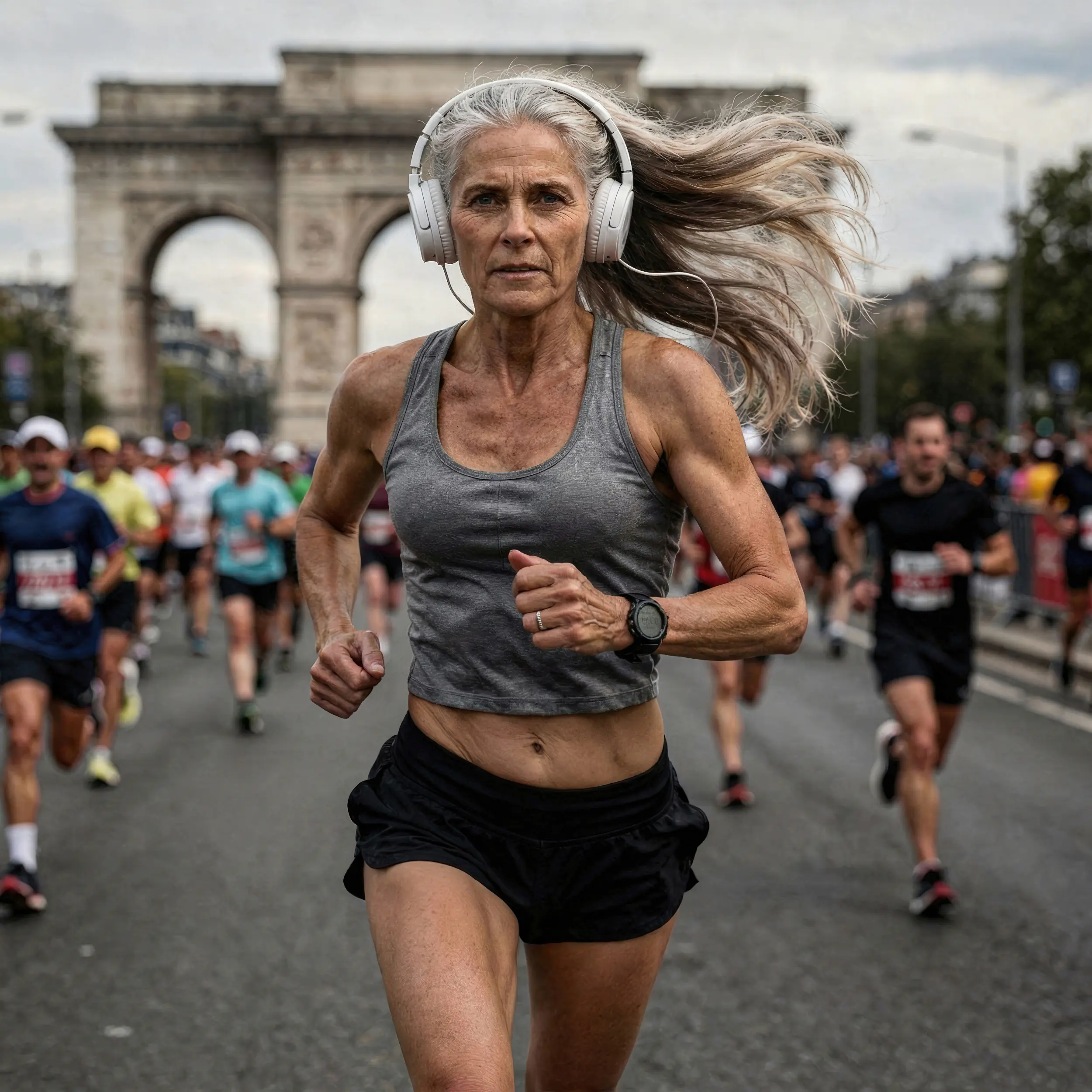 Authentische Event-Inszenierung ohne On-Location-Genehmigungen. Markenkonforme Darstellung von Best-Ager-Athleten in dynamischen Massenszenen mit Fokus auf Emotionalität und Bewegung.