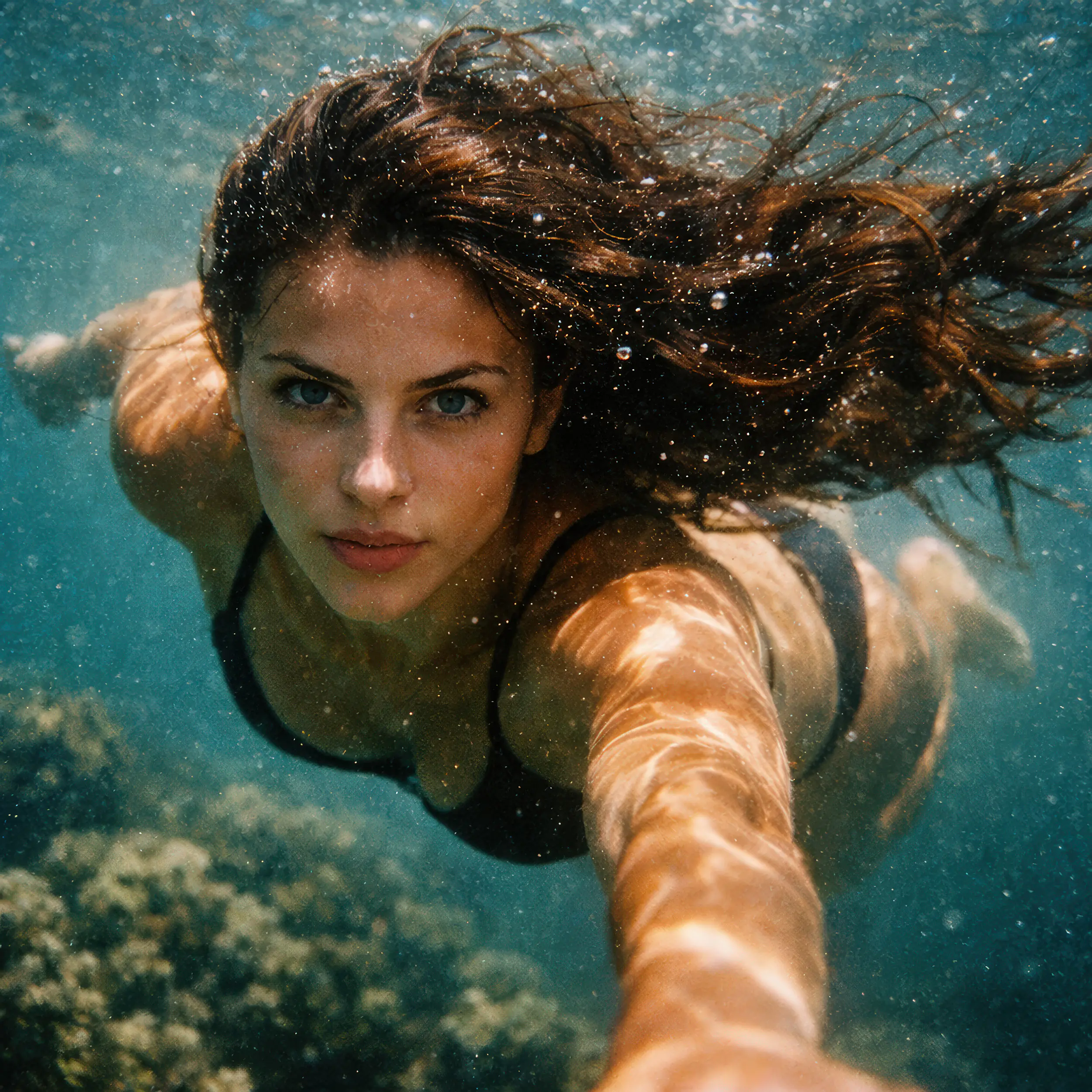 Komplexe Unterwasser-Produktionen ohne spezialisierte Crew. Art-directed KI-Visualisierung dynamischer Wasser-Elemente, Lichtbrechungen und natürlicher Texturen.