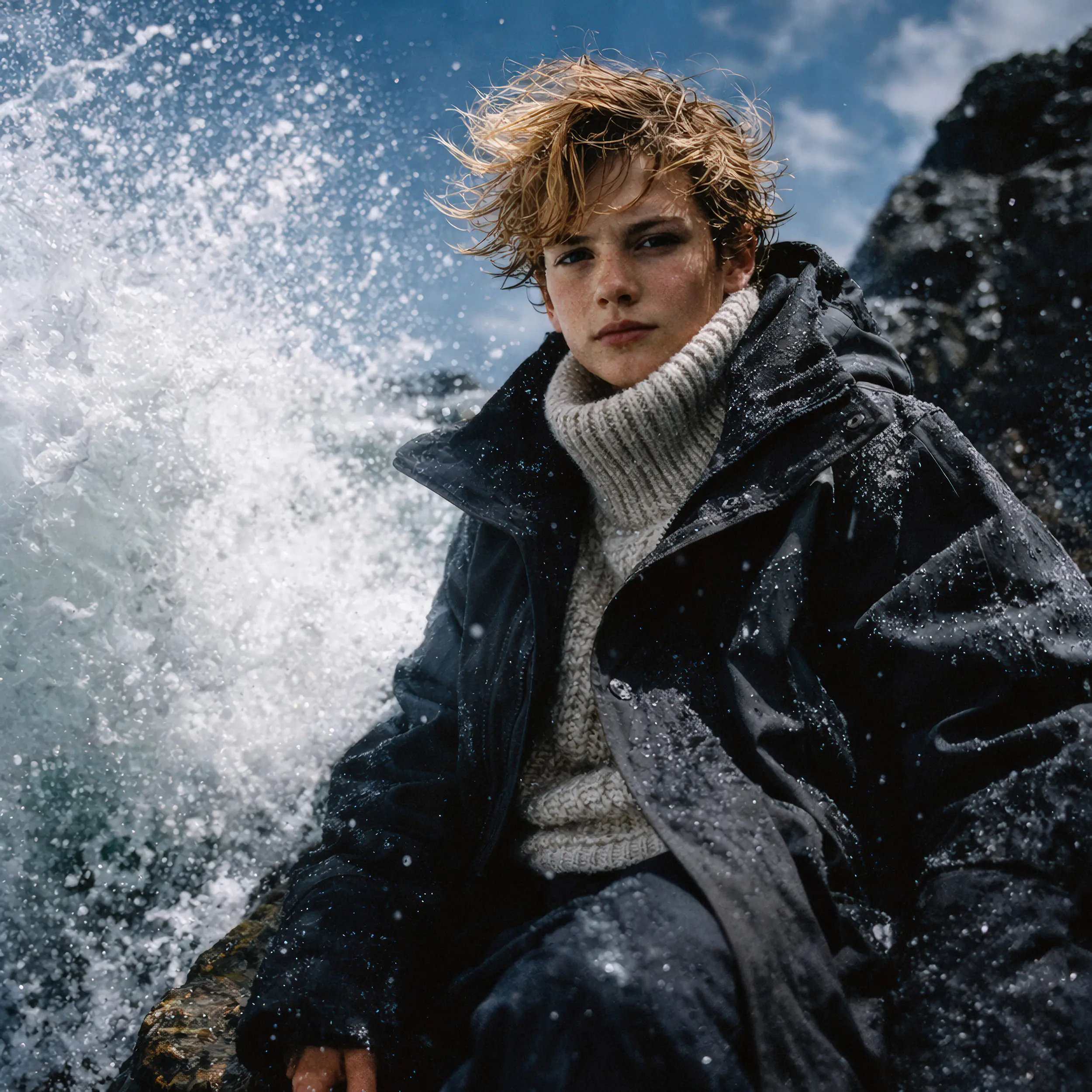 Dynamische Outdoor-Inszenierung ohne Wetterrisiko und Crew-Logistik oder model. Präzise Steuerung komplexer physikalischer Effekte wie Gischt und Kleidung, und exakte Textil-Strukturen.
