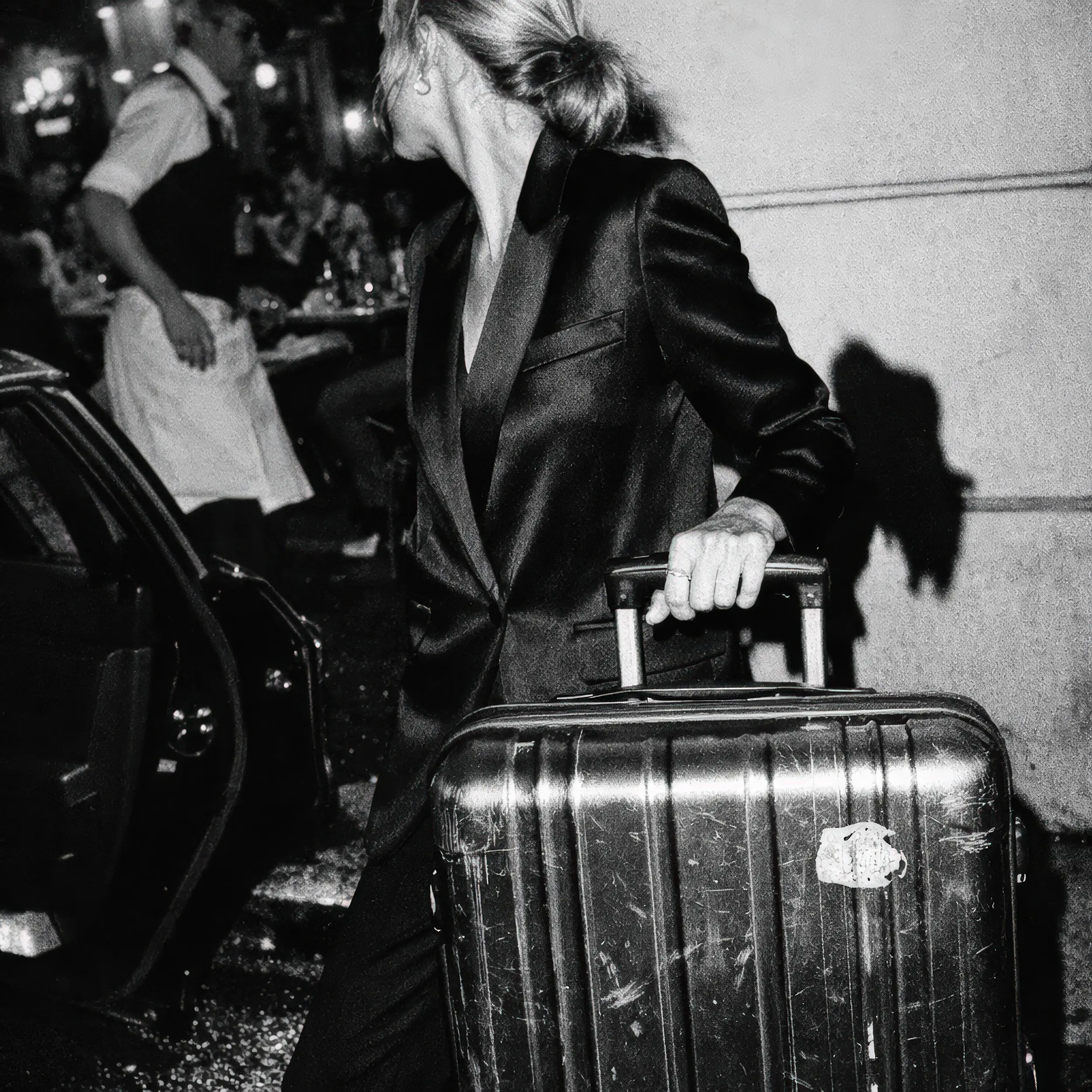 Candid-Editorial-Style ohne High-End-Produktionsteam. Markenkonforme Inszenierung im zeitlosen Schwarz-Weiß-Look mit authentischer Körnung und Blitzlicht-Charakter.